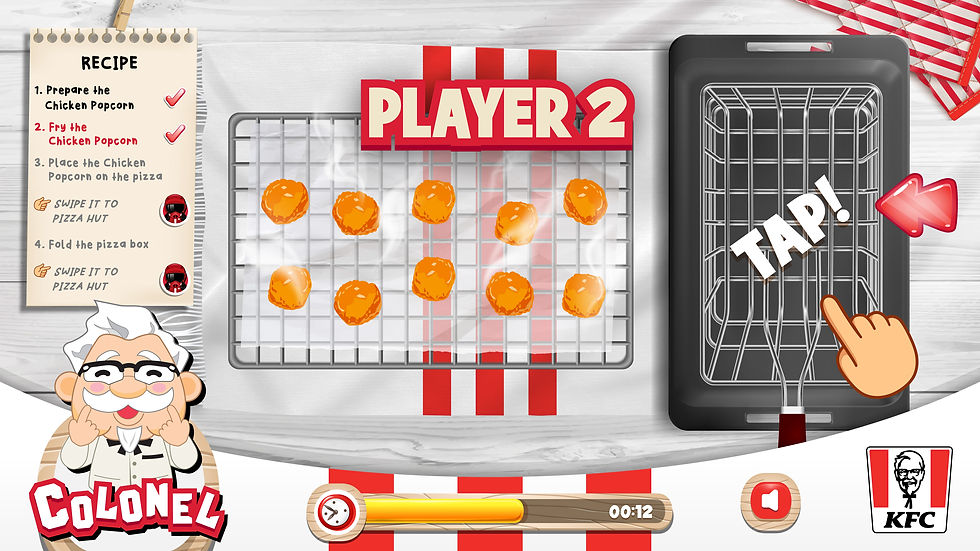 Pizza Hut and KFC are releasing an epic collaboration pizza. Ogilvy Hong Kong created a co-op mobile video game: Pizza Hut x KFC Kitchen. The game connects two phones where you and a friend can make the latest Pizza Hut x KFC Chicken Popcorn Pizza unlock tasty rewards!